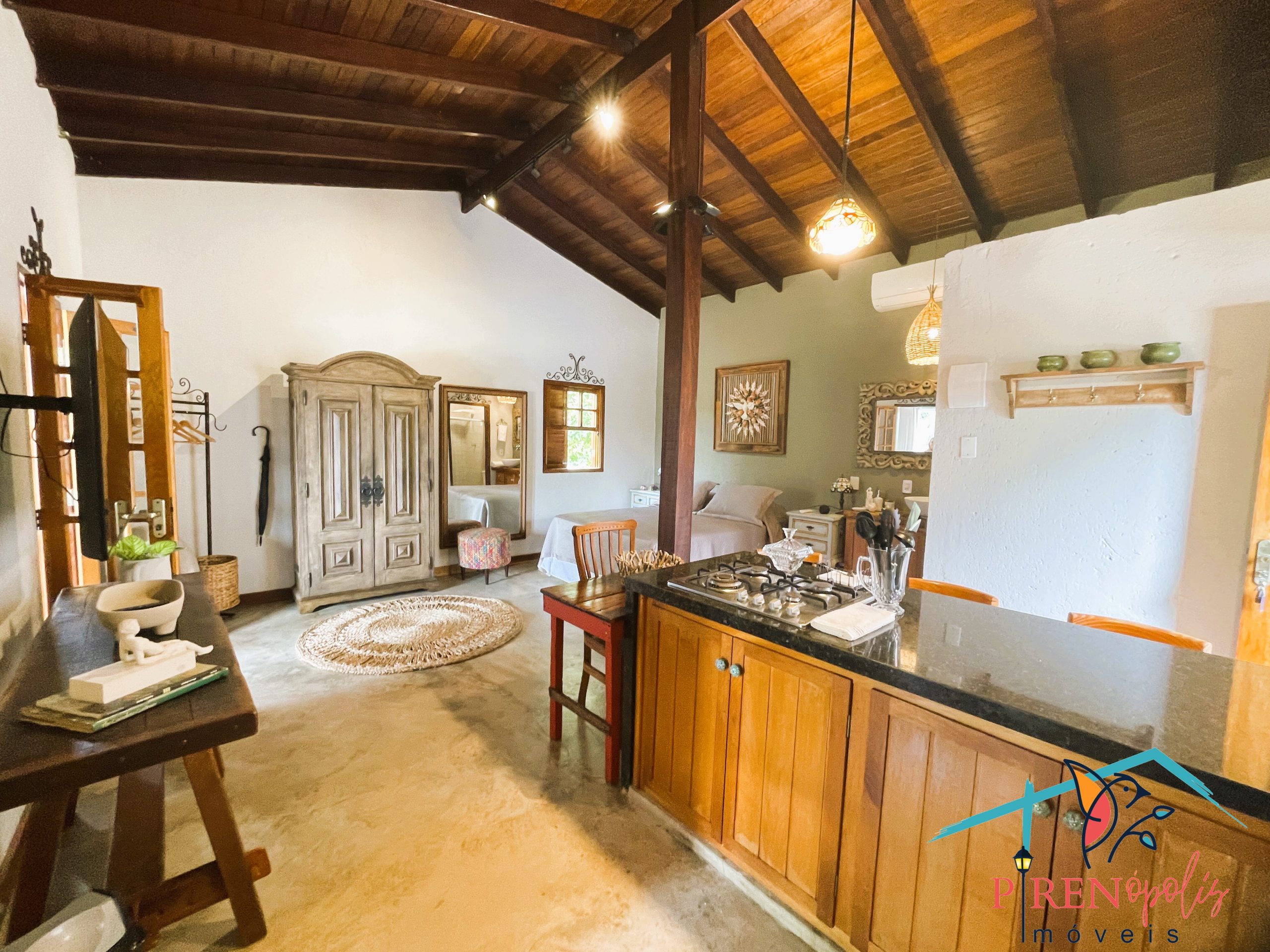 Descubra o refúgio perfeito em um dos bairros mais exclusivos de Pirenópolis! Este flat de luxo, localizado em um lote de 800 metros quadrados, oferece um estilo de vida sofisticado e confortável.
