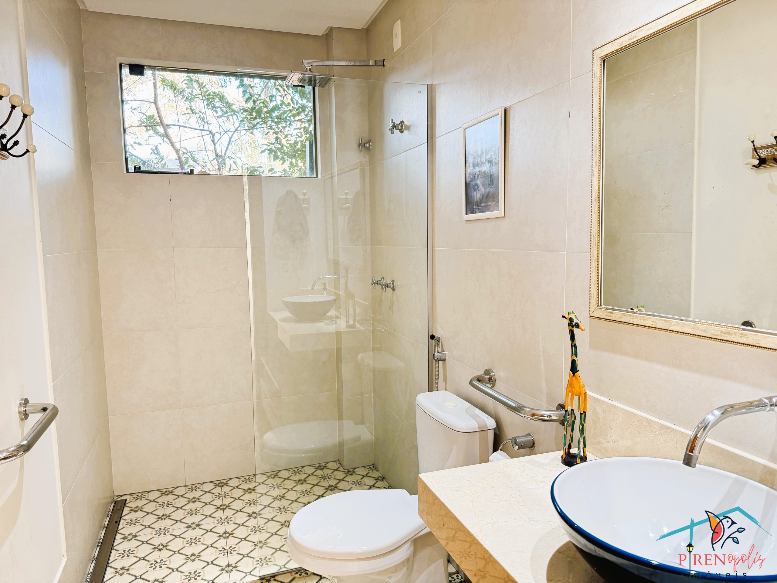 * Banheiro de apoio na área externa, atendendo com comodidade a área da piscina